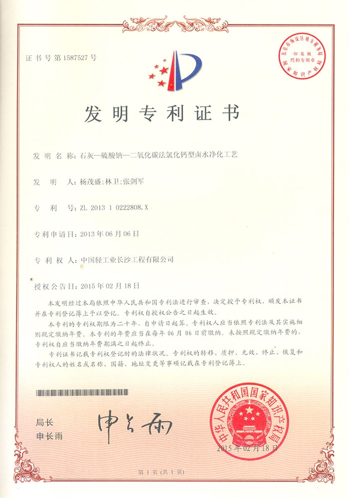 CaCl2 Brine Purification Process by Lime- Na2SO4-CO2