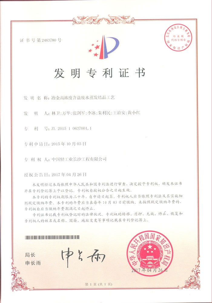 Evaporative crystallizing process for high salt wastewater in metallurgical industry