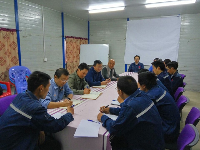 林總一行頂著陽(yáng)光和風(fēng)沙實(shí)地察看工地現(xiàn)場(chǎng)后,當(dāng)天晚上又組織大家召開(kāi)了現(xiàn)場(chǎng)座談會(huì)。會(huì)議聽(tīng)取了項(xiàng)目經(jīng)理鄒忠偉就項(xiàng)目有關(guān)設(shè)計(jì)、采購(gòu)、施工情況的匯報(bào):埃塞PVC項(xiàng)目體量大、建筑單體多、合同工期緊,任務(wù)重,項(xiàng)目于2016年12月9日破土動(dòng)工,半年多來(lái),現(xiàn)場(chǎng)同事們克服了水土不服、蚊蟲(chóng)叮咬、陽(yáng)光暴曬、塵土飛揚(yáng)以及語(yǔ)言障礙等不利條件,目前已有28個(gè)建筑單體開(kāi)始基礎(chǔ)施工,項(xiàng)目部計(jì)劃雨季前完成目前已經(jīng)開(kāi)挖的建筑單體±0.00施工。但由于各合作方現(xiàn)場(chǎng)作業(yè)人員施工習(xí)慣不同等,后期隨著開(kāi)工的建筑單體逐步增多,建筑高度逐步升高,施工將面臨更多的困難。林總最后強(qiáng)調(diào),風(fēng)疾浪高,我們更要擊楫勇進(jìn),項(xiàng)目部要始終將安全放在各項(xiàng)工作的首位,杜絕施工現(xiàn)場(chǎng)安全隱患,加強(qiáng)對(duì)參建單位的管控和各專業(yè)的協(xié)調(diào),特別是設(shè)計(jì)、采購(gòu)與現(xiàn)場(chǎng)施工之間的協(xié)調(diào),保證每道工序的有效銜接,在確保施工安全的前提下?lián)屪ミM(jìn)度。