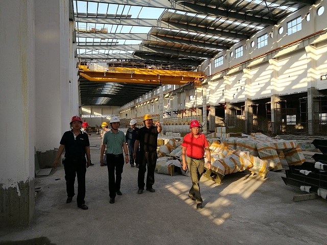 陳董一行不畏烈日酷暑,剛到項(xiàng)目辦公區(qū)即刻帶上安全帽直奔施工現(xiàn)場(chǎng)。在業(yè)主方金田紙業(yè)歐陽董事長(zhǎng)及董事陪同下依次查看正在施工的濕式造紙聯(lián)合廠房、新增碎解車間及汽機(jī)間。在現(xiàn)場(chǎng),陳董詳細(xì)了解項(xiàng)目進(jìn)展情況及安全生產(chǎn)情況,并與業(yè)主方進(jìn)行了充分交流。業(yè)主方對(duì)項(xiàng)目目前實(shí)施情況及總體進(jìn)度十分滿意,業(yè)主方與陳董一行就后期安裝過程中供貨高峰期可能會(huì)出現(xiàn)的重點(diǎn)難點(diǎn)問題進(jìn)行了溝通。