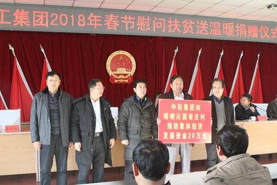 中輕集團首先為希莊村捐贈集體經(jīng)濟發(fā)展基金20萬,為希莊村70歲以上老人、為希莊村黨員活動室和扶貧干部之家捐贈慰問物資。隨后,參觀希莊村村委會,詳細了解希莊村脫貧攻堅開展情況,慰問組一行還深入到希莊村兩戶貧困戶中,了解他們的生活情況,并送去慰問金和慰問品。