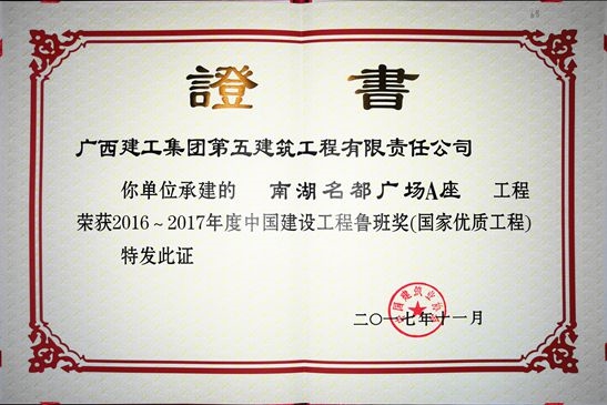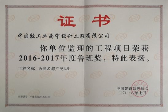 近日,海誠股份南寧公司監(jiān)理的工程項目—南湖名都廣場榮獲中國建設(shè)監(jiān)理協(xié)會授予“2016-2017年度魯班獎”。魯班獎是中國建筑行業(yè)工程質(zhì)量最高榮譽獎,這是公司繼廣西壯族自治區(qū)人民檢察院業(yè)務(wù)技術(shù)偵查綜合樓(2005年獲魯班獎)、廣西南寧市國土交易綜合樓(2011年獲魯班獎)后,再次獲此殊榮,具有里程碑的意義。