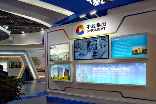 保利聯(lián)合展廳位于500強(qiáng)企業(yè)所在的N3展館。其中,中輕集團(tuán)海誠股份的展臺分為 “食品加工”、“智能工廠”、“環(huán)境保護(hù)”、“健康休閑”四個(gè)板塊。