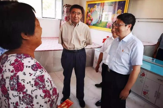 小牛群村蟬鳴陣陣,夏意濃濃。徐念沙一行參加了“保利集團農(nóng)村老年互助幸福院”揭牌儀式,詳細了解互助院的運營模式,老人們的生活環(huán)境,看望精準識別貧困戶,向他們送去保利集團的關心和慰問?;ブ菏潜@瘓F在建設美麗幸福鄉(xiāng)村方面的一次嘗試:由保利投資改建完成,在不增加貧困家庭負擔的前提下,把居住分散的老年家庭集中在一起,分戶生活、互相幫助、統(tǒng)一服務,改善老人生活照料,提升幸福感。