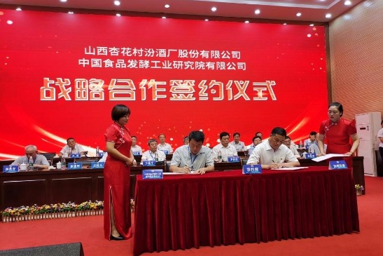 8月8日,食品院受邀與山西杏花村汾酒集團(tuán)第一屆科技大會(huì),食品院總經(jīng)理董建輝、原副院長張五九、副院長宋全厚、釀酒技術(shù)研究發(fā)展部主任王德良,中國酒業(yè)協(xié)會(huì)理事長王延才,江南大學(xué)校長、中國工程院院士陳堅(jiān),山西汾酒集團(tuán)董事長李秋喜等白酒行業(yè)權(quán)威人士和龍頭企業(yè)家出席會(huì)議。