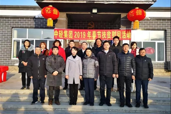2019年新春前夕,中輕集團黨委派出扶貧工作組赴喀喇沁旗開展扶貧慰問活動,送去糧油、棉被等慰問品。