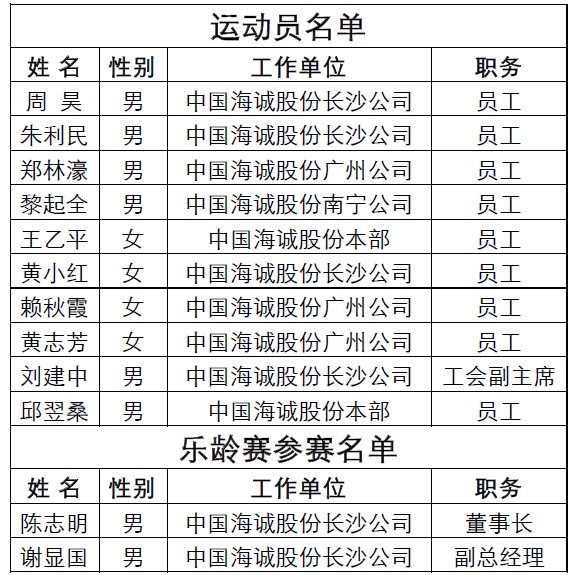 中輕集團(tuán)代表隊名單如下: