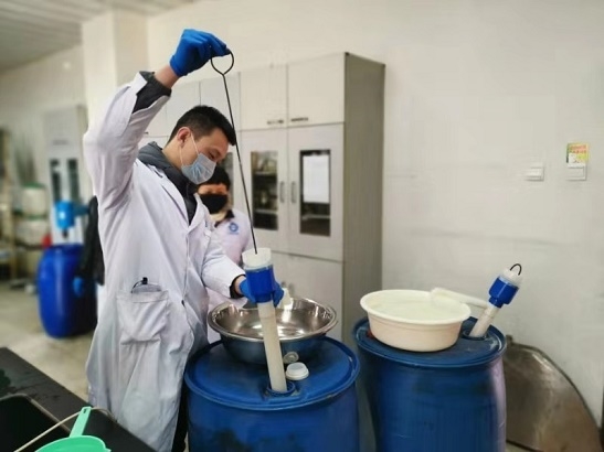 日化院表面活性劑重點(diǎn)實(shí)驗(yàn)室副主任臺秀梅說:“接到聯(lián)防聯(lián)治通知后,課題組成員都一呼即應(yīng),加班加點(diǎn),在實(shí)驗(yàn)室利用平時(shí)積累的配方配置出1200公斤消毒劑,通過1比100稀釋,就可以兌出120噸的消毒液,為疫情防控做出我們自己的貢獻(xiàn)。”