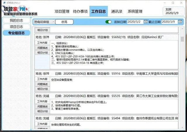 面對在建項目遇到的人員無法到崗、項目暫停等困難,為了有效確保人員安全和項目進度,海誠股份第三設計/工程部自主開發(fā)應用“項管家PM+”信息化系統(tǒng),通過“云平臺”實現數字辦公、云上設計,為部門及項目管理人員實時追蹤、掌控、調整工作節(jié)奏和進度提供強有力支撐,對居家辦公人員業(yè)務建設、項目總結學習以及項目經營管理相關日志等工作情況進行實時把控,實現了對居家辦公人員的全覆蓋動態(tài)追蹤,推動在執(zhí)行的項目均按計劃推進,真正做到疫情防控和企業(yè)發(fā)展兩手抓、兩不誤、兩促進。