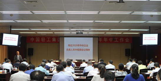 7月24日,中輕集團(tuán)召開2020年年中工作會(huì),總結(jié)上半年工作,分析當(dāng)前形勢(shì),研究部署下半年重點(diǎn)任務(wù)。中輕集團(tuán)董事長(zhǎng)、黨委書記張萬(wàn)順傳達(dá)國(guó)資委和保利集團(tuán)有關(guān)會(huì)議精神并做總結(jié)講話,總經(jīng)理郭建全做了上半年工作報(bào)告。會(huì)議采取視頻會(huì)議的形式,保利集團(tuán)戰(zhàn)略投資中心張旻部長(zhǎng),中輕集團(tuán)領(lǐng)導(dǎo)班子、總部中層以上領(lǐng)導(dǎo)干部、各二級(jí)子公司黨政主要負(fù)責(zé)人等在主會(huì)場(chǎng)參加會(huì)議,各子公司在全國(guó)16個(gè)分會(huì)場(chǎng)共400余人參加會(huì)議。