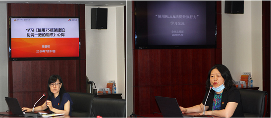 辦公室主任陳薈欞圍繞徐念沙書記黨課和《使用7S框架建設(shè)協(xié)調(diào)一致的組織》課程內(nèi)容,結(jié)合中輕集團(tuán)宣傳冊制訂工作分享學(xué)習(xí)心得;總經(jīng)理助理、企業(yè)發(fā)展部主任肖丹圍繞徐念沙書記黨課和《使用PLAN法提升執(zhí)行力》課程內(nèi)容,結(jié)合中輕集團(tuán)戰(zhàn)略規(guī)劃編制工作與大家進(jìn)行充分交流。