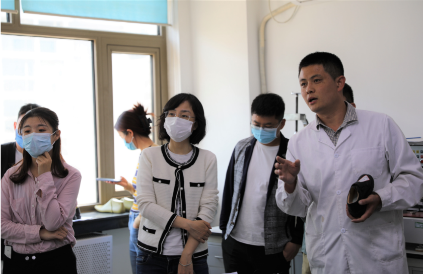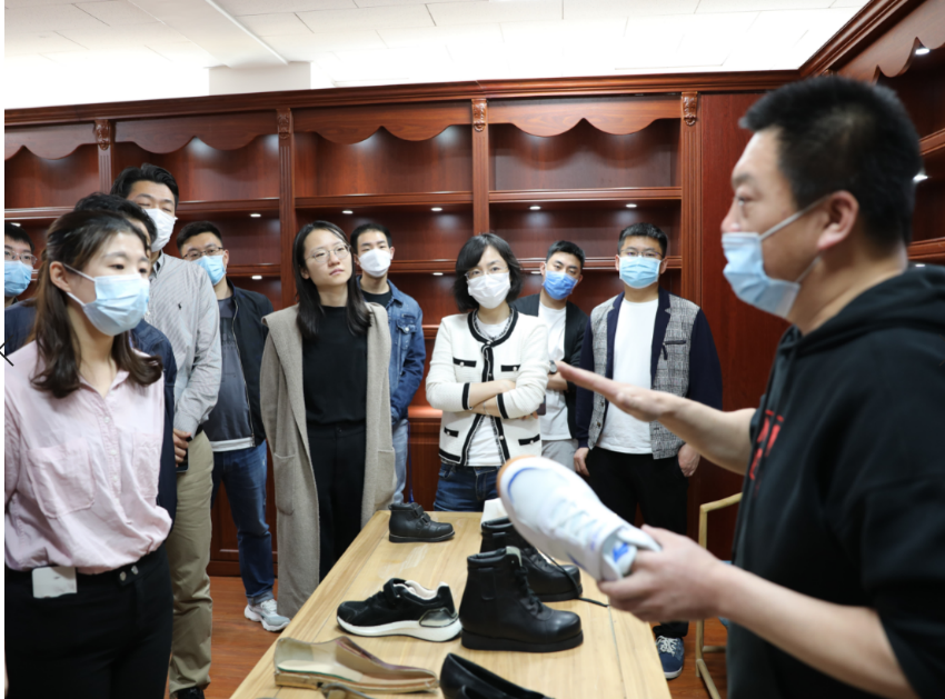 隨后,大家在陳鐳書(shū)記的陪同下,由中國(guó)皮革制鞋院團(tuán)支部書(shū)記王家軼帶領(lǐng)參觀了實(shí)驗(yàn)室。“皮革材質(zhì)鑒定室”、“鞋類(lèi)物理檢測(cè)室”和“腳型鞋楦展廳”引起了大家濃厚興趣。最后,大家在 “優(yōu)品小店”駐足,聽(tīng)取中國(guó)皮革制鞋院在試點(diǎn)品牌終端服務(wù)的有益探索。