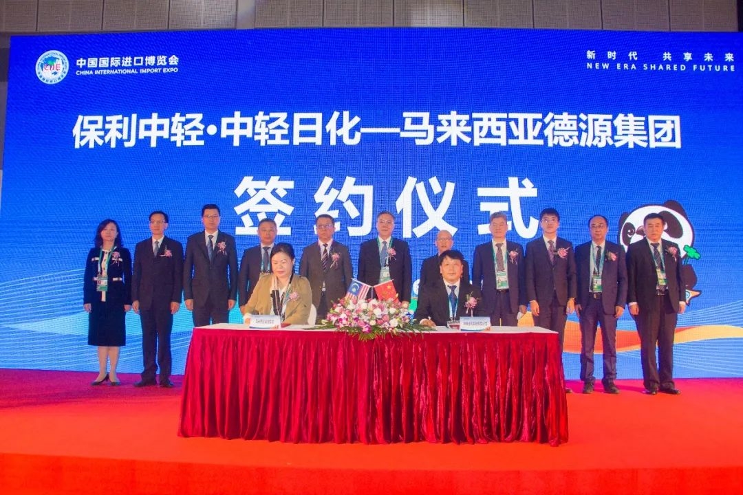 11月7日下午,在第四屆中國國際進(jìn)口博覽會(huì)上,保利中輕所屬中輕日化科技有限公司(以下簡稱中輕日化)與馬來西亞德源集團(tuán)(以下簡稱德源集團(tuán))簽署采購協(xié)議。保利集團(tuán)黨委常委、副總經(jīng)理張曦,保利中輕總經(jīng)濟(jì)師趙國昂,保利集團(tuán)戰(zhàn)投中心副主任杜鵬,中輕日化董事長耿濤、總經(jīng)理封益民出席簽約儀式。