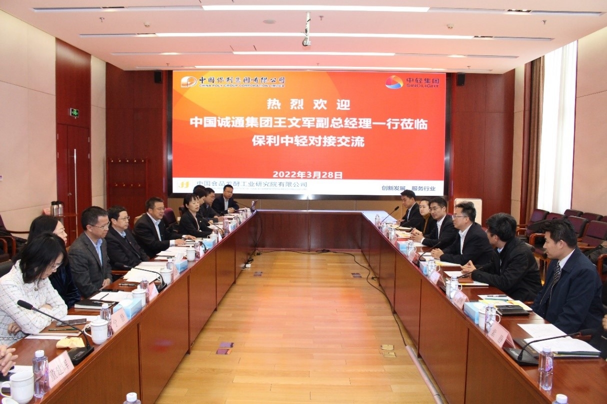 3月28日下午,保利中輕黨委副書記、董事、總經(jīng)理王珂靈在中國食品發(fā)酵工業(yè)研究院會見中國誠通控股集團(tuán)有限公司副總經(jīng)理王文軍一行,雙方就加強科技服務(wù)、工程全過程服務(wù)、股權(quán)處置和資本運作等方面合作進(jìn)行了深入交流。