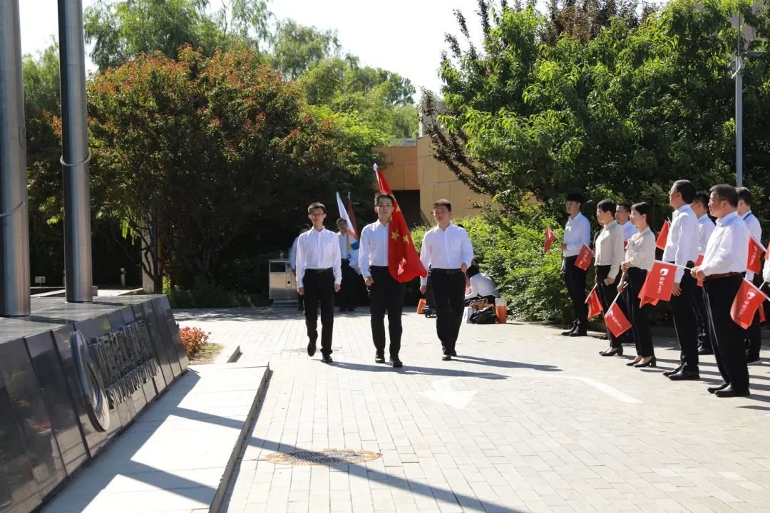 8點30分,迎著夏日晨光,活動正式開始。伴隨著激昂的音樂,升旗手護(hù)衛(wèi)著五星紅旗,保利集團(tuán)、保利中輕司旗,邁著鏗鏘有力的步伐,列隊依次走向升旗臺。