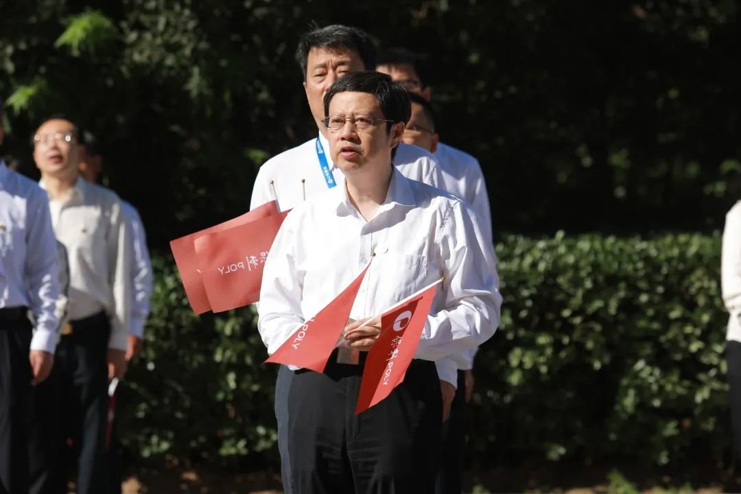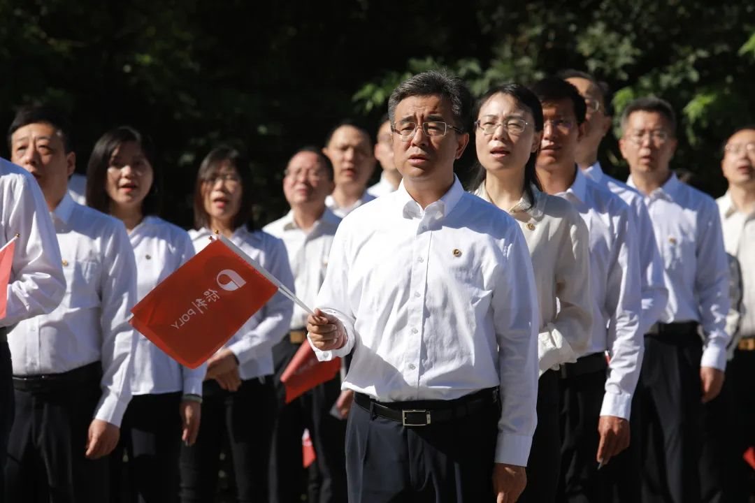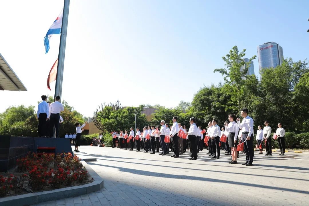 全體人員莊嚴(yán)肅立、昂首挺胸,齊唱中華人民共和國國歌《義勇軍進(jìn)行曲》、保利集團(tuán)司歌《一路向陽》,向鮮艷的旗幟行注目禮。