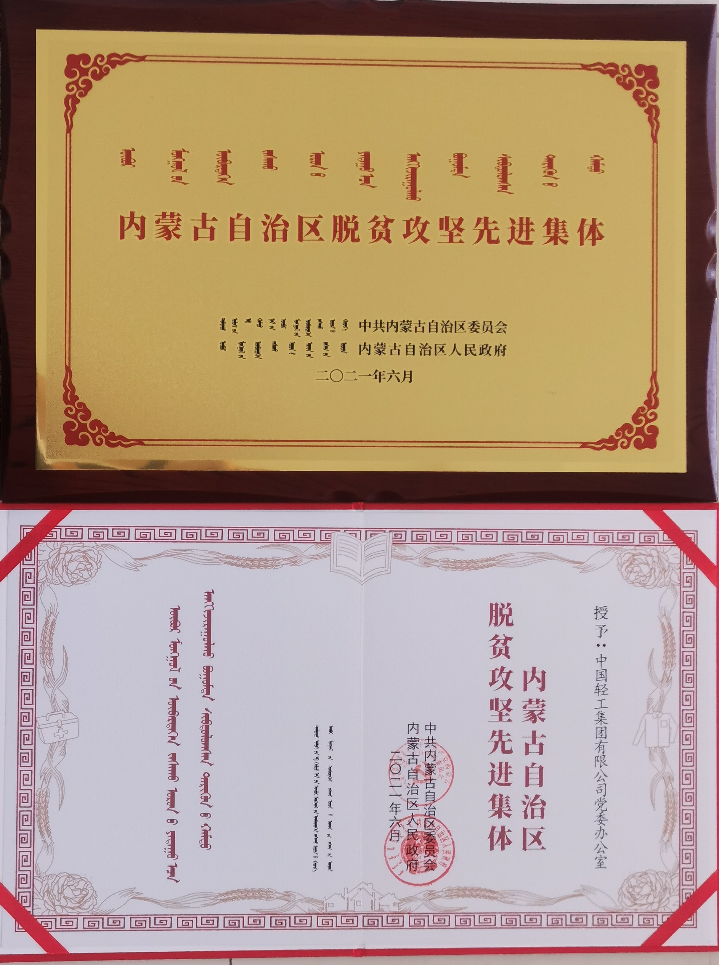 為表彰保利中輕黨委在喀喇沁旗脫貧攻堅中的突出貢獻,2021年內(nèi)蒙古自治區(qū)黨委政府授予保利中輕黨委辦公室“內(nèi)蒙古自治區(qū)脫貧攻堅先進集體”稱號,其中掛職干部王軍輝榮獲2021年度“喀喇沁旗優(yōu)秀共產(chǎn)黨員”,劉為在2021年公務員考核中評為“赤峰市優(yōu)秀公務員”。
