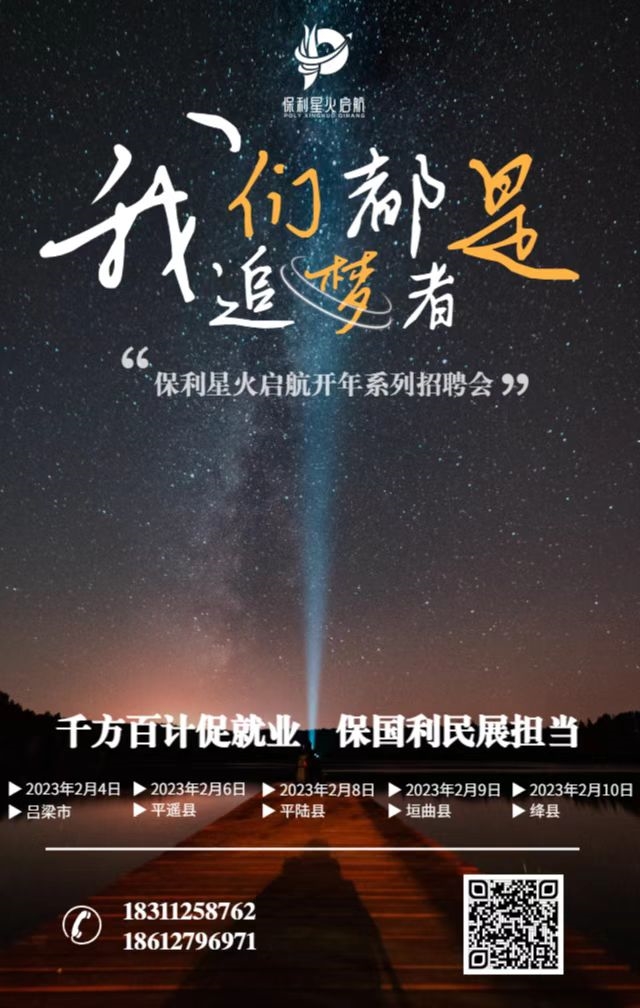 春風送真情,援助暖民心。為將更多境外優(yōu)質崗位提供給山西省群眾,助力當?shù)厝罕娋蜆I(yè)增收,2023年2月,保利中輕所屬中輕控股派遣的保利星火啟航項目組參加了山西省人力資源和社會保障廳在山西各地陸續(xù)舉辦的“惠民生 促就業(yè)”—春風行動暨就業(yè)援助月系列招聘活動,分別赴山西省晉中市平遙縣、呂梁市離石區(qū)、興縣、運城市平陸縣、垣曲縣等地現(xiàn)場招聘。