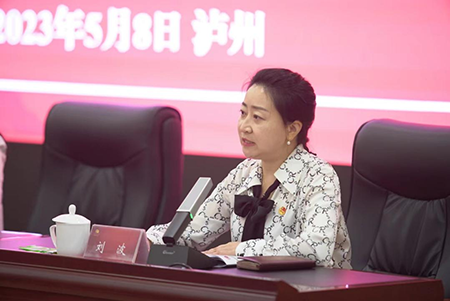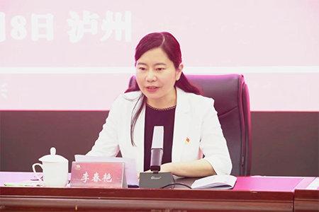 李春艷致歡迎辭,向?qū)W員簡(jiǎn)要介紹瀘州整體情況和分院建設(shè)情況,并為培訓(xùn)班授旗。