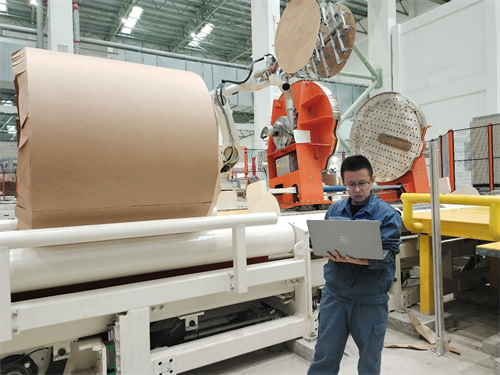 在馬來西亞玖龍項(xiàng)目的紙卷輸送包裝車間,一位工作人員正在通過電腦連接生產(chǎn)線進(jìn)行調(diào)試。他注意力高度集中,根據(jù)紙卷包裝運(yùn)行狀態(tài)有條不紊地調(diào)整著各項(xiàng)參數(shù),很快地,一個(gè)個(gè)紙卷像聽懂了他的命令一般,整齊有序地依次排隊(duì)入庫……
