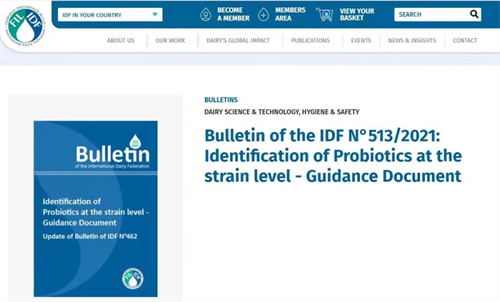 2021年12月15日,國(guó)際乳品聯(lián)合會(huì)(IDF)正式發(fā)布由中國(guó)食品院牽頭修訂的《IDF公報(bào)N°513/2021 益生菌菌株水平鑒定指導(dǎo)文件》。