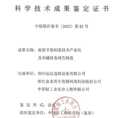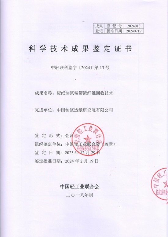 中國制漿造紙研究院1項目獲得中國輕工業(yè)聯(lián)合會科技進步獎一等獎,3項成果通過鑒定
