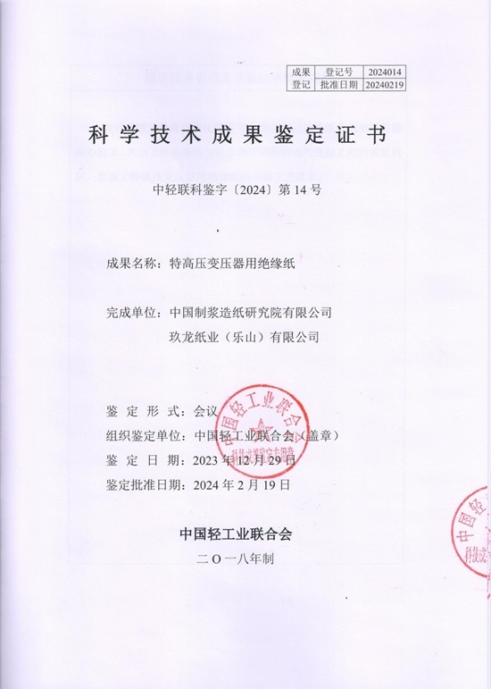 中國制漿造紙研究院“特種無石棉纖維密封材料系列產(chǎn)品”項目獲中國輕工業(yè)聯(lián)合會科技進步獎一等獎。“特高壓變壓器用絕緣紙”、“廢紙制漿精篩渣纖維回收技術(shù)”和“超高效玻纖濾紙”等3項科學(xué)技術(shù)成果通過中國輕工業(yè)聯(lián)合會組織鑒定,其中“特高壓變壓器用絕緣紙”獲得國際先進評價,其余2項獲得國內(nèi)領(lǐng)先評價。此外,中國制漿造紙研究院1項國際發(fā)明專利獲得南非共和國知識產(chǎn)權(quán)局授權(quán)。