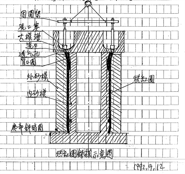 孫孝孺繪制的烘缸圈鑄模示意圖