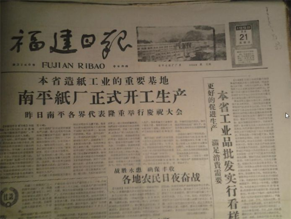 《福建日?qǐng)?bào)》對(duì)當(dāng)時(shí)南平造紙廠正式開工生產(chǎn)的新聞報(bào)道