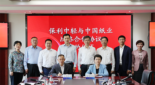 4月23日,中國(guó)輕工集團(tuán)有限公司(以下簡(jiǎn)稱(chēng)保利中輕)與中國(guó)紙業(yè)投資有限公司(以下簡(jiǎn)稱(chēng)中國(guó)紙業(yè))在保利中輕總部就進(jìn)一步深化合作座談交流并簽署戰(zhàn)略合作協(xié)議。保利中輕黨委副書(shū)記、總經(jīng)理趙國(guó)昂;保利中輕副總經(jīng)理,中國(guó)造紙?jiān)狐h委書(shū)記、董事長(zhǎng)孫波;中國(guó)紙業(yè)黨委書(shū)記、董事長(zhǎng)鐘天崎,副總經(jīng)理曹衛(wèi)良、謝先龍,總經(jīng)理助理、總工程師單立偉出席簽約儀式。
