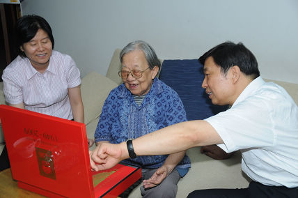 李源潮同志詳細(xì)詢問了鄭琳同志的身體健康狀況、家庭生活情況及子女情況。看到鄭琳同志雖然年事已高,但依然身體健康,精神矍鑠,李源潮同志非常高興。鄭琳同志表示,現(xiàn)在生活得很愉快、很幸福、很滿意,感謝中組部領(lǐng)導(dǎo)以及單位領(lǐng)導(dǎo)對(duì)她的親切關(guān)懷。最后,李源潮同志祝鄭琳同志及家人節(jié)日愉快、健康長壽。