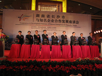 全國(guó)人大常委會(huì)原副委員長(zhǎng)蔣正華在會(huì)上發(fā)表了講話。他認(rèn)為長(zhǎng)沙在克服金融危機(jī)影響、實(shí)現(xiàn)又好又快發(fā)展上取得了令人稱道的成績(jī),希望有實(shí)力的企業(yè)多到長(zhǎng)沙看看,加強(qiáng)與長(zhǎng)沙的交流合作,實(shí)現(xiàn)互利雙贏。中共湖南省委常委、長(zhǎng)沙市委書記陳潤(rùn)兒在會(huì)上介紹了長(zhǎng)沙的發(fā)展成就和投資優(yōu)勢(shì),表達(dá)了加強(qiáng)長(zhǎng)沙與知名企業(yè)合作,實(shí)現(xiàn)互利共贏的良好愿望。會(huì)議由長(zhǎng)沙市委副書記、市長(zhǎng)張劍飛主持。