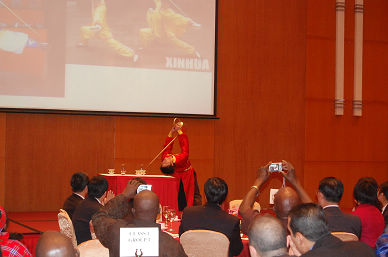 聯(lián)歡會上,由中食院工會牽頭組織的來自院科技發(fā)展部、物業(yè)部、財(cái)務(wù)部和食品、發(fā)酵、國際合作等各部門工作人員表演的扇子舞及變臉、茶藝、抖空竹等節(jié)目精彩紛呈,博得了全場觀眾的陣陣掌聲。學(xué)員們也通過自編自演的節(jié)目表達(dá)了對主辦單位、承辦單位的感激之情和中國人民的深厚情誼。商務(wù)部、集團(tuán)公司和院領(lǐng)導(dǎo)主持的現(xiàn)場抽獎(jiǎng)活動將晚會推向高潮,2個(gè)小時(shí)的晚會在熱烈友好的氣氛中圓滿結(jié)束。