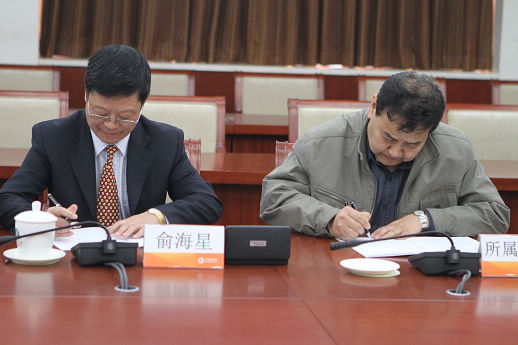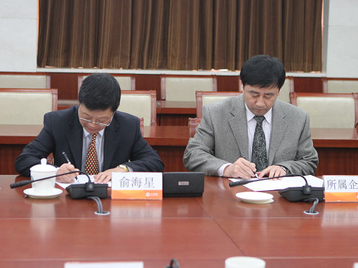 集團(tuán)公司總經(jīng)理俞海星與日化院院長王萬緒簽訂任務(wù)合同書