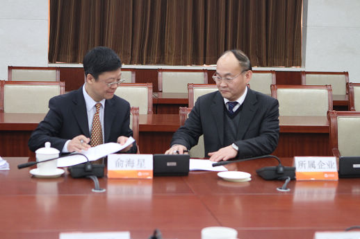 集團(tuán)公司總經(jīng)理俞海星與食品院黨委書記董守誠簽訂任務(wù)合同書