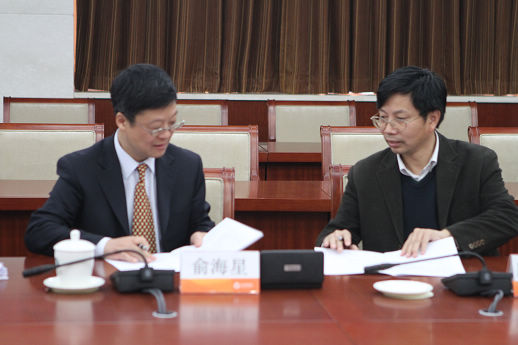 集團(tuán)公司總經(jīng)理俞海星與皮革院院長楊承杰簽訂任務(wù)合同書