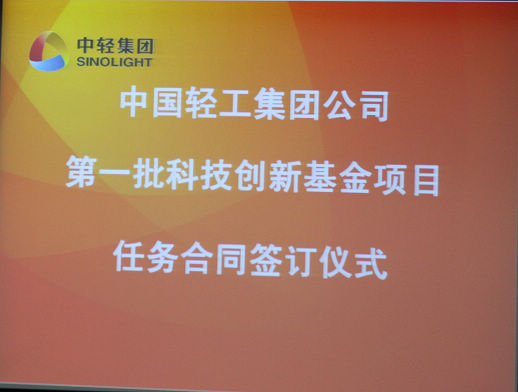 中國輕工集團(tuán)公司首批科技創(chuàng)新基金項(xiàng)目任務(wù)合同書簽訂儀式于2月25日在京舉行,集團(tuán)公司領(lǐng)導(dǎo)、集團(tuán)公司部門負(fù)責(zé)人、項(xiàng)目承擔(dān)單位主要負(fù)責(zé)人出席了儀式。