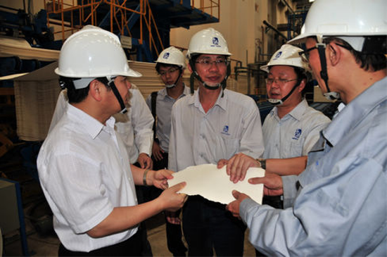 考察期間,陳董事長一行聽取了項目建設(shè)情況的匯報,特別了解了在應(yīng)對材料設(shè)備價格上漲、人民幣升值、業(yè)主土建工期延誤及外部環(huán)境等眾多挑戰(zhàn)中積累的經(jīng)驗,并深入生產(chǎn)車間一線了解設(shè)備運行情況。陳董事長親切看望了項目員工,感謝他們在異國他鄉(xiāng)的辛勤付出,勉勵大家再接再勵、早日全面完成項目建設(shè)和移交工作,并在工地食堂與大家共進午餐。期間,陳董事長一行還與業(yè)主安化制漿廠及日本丸紅公司進行了會見交流。
