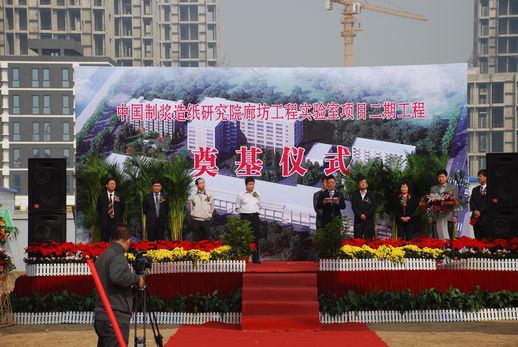 2012年10月12日,俞海星總經(jīng)理出席了中國制漿造紙研究院廊坊工程實驗室項目二期工程開工奠基儀式。俞總在致辭中對造紙院廊坊項目建設(shè)工作給予了充分肯定,對長期以來關(guān)心和支持中輕集團(tuán)發(fā)展,特別是關(guān)心和支持該項目籌備實施的廊坊市各級領(lǐng)導(dǎo)和部門表示了感謝,并向為工程開工付出辛勤勞動的一線干部職工表示了慰問。他希望項目承建單位要切實增強(qiáng)緊迫感和責(zé)任感,嚴(yán)格工程管理,確保安全、質(zhì)量和進(jìn)度,力爭把項目建設(shè)成為廊坊科技谷的標(biāo)志性、樣板性工程。中國制漿造紙研究院院長曹春昱和廊坊科技谷有關(guān)領(lǐng)導(dǎo)也分別在儀式上致辭。