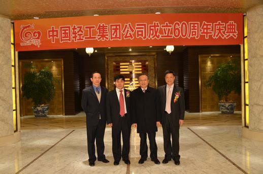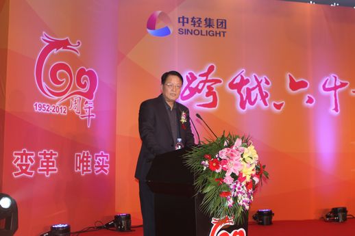 2012年11月29日,中國輕工集團公司成立六十周年慶典大會在亞洲大酒店舉行。國務院國資委副主任、黨委副書記黃淑和、國有大型重點企業(yè)監(jiān)事會主席尋寰中、中國輕工業(yè)聯(lián)合會會長步正發(fā)、中國輕工業(yè)聯(lián)合會名譽會長楊志海、潘蓓蕾等領導出席慶典大會。來自國務院國資委、國家發(fā)改委、國家安監(jiān)總局、中國輕工業(yè)聯(lián)合會、有關中央企業(yè)等部委局的有關領導和集團公司老領導、領導班子全體成員、集團公司各二級單位、部分三級單位領導干部代表、集團公司黨的十八大代表、在京二級單位老領導、老同志代表,部分職工代表、青年代表、集團總部全體職工等約200人出席了慶典大會。