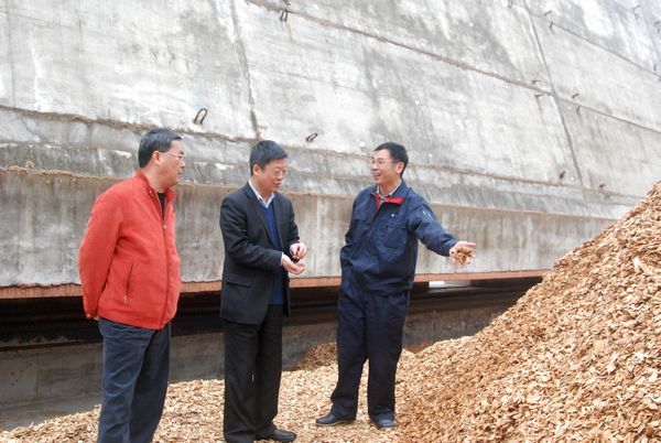 俞海星在進(jìn)口木片供料場交流指導(dǎo)