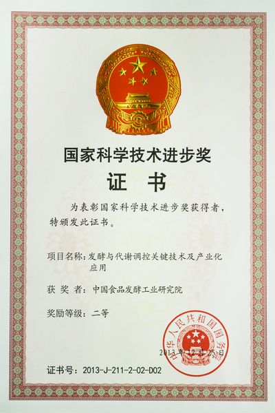 在剛剛閉幕的2013年度國(guó)家科技獎(jiǎng)勵(lì)大會(huì)上,中國(guó)食品發(fā)酵工業(yè)研究院參加完成的“發(fā)酵與代謝調(diào)控關(guān)鍵技術(shù)及產(chǎn)業(yè)化應(yīng)用”成果,榮獲2013年度國(guó)家科技進(jìn)步二等獎(jiǎng)(張五九副院長(zhǎng)在獲獎(jiǎng)人員中排名第二)。