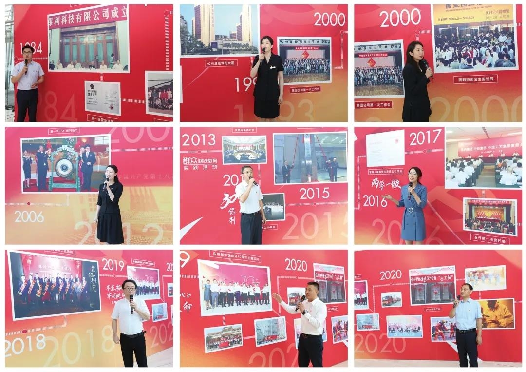 在國歌奏唱聲中,活動拉開帷幕。來自不同業(yè)務板塊的9名黨員接力講述保利故事,在他們的講述下,集團公司36年發(fā)展史徐徐展開。