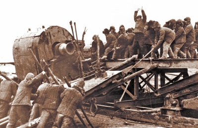 大會戰(zhàn)時期,王進(jìn)喜(中)和鉆井工人們?nèi)死缈高\鉆機(jī),保障鉆井作業(yè)。(資料圖片)