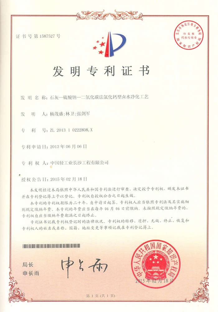 石灰-硫酸鈉-二氧化碳法氯化鈣型鹵水凈化工藝